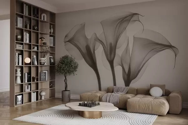 Фотошпалери повітряні прозорі квіти зантедескії в бежевих тонах w02632