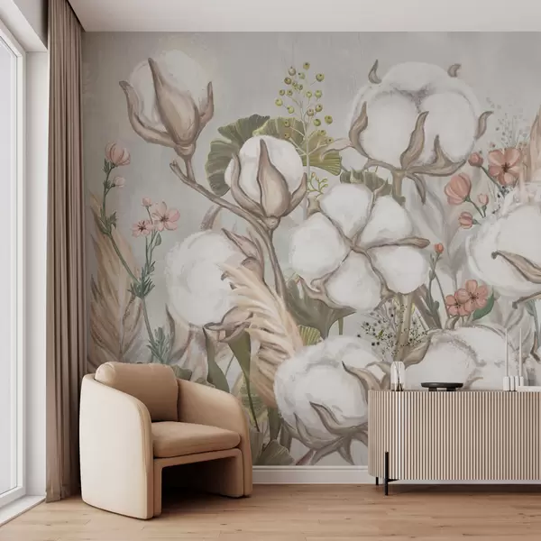 Фотошпалери Ніжна композиція з бавовняних квітів w02641