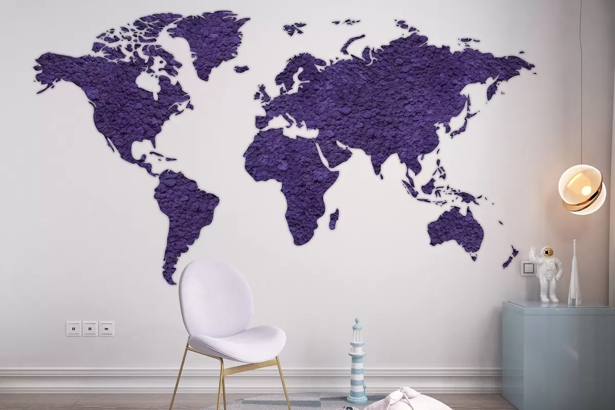 Шпалери Карта світу з мохом, природою, фіолетовою палітрою кольорів w02657v3