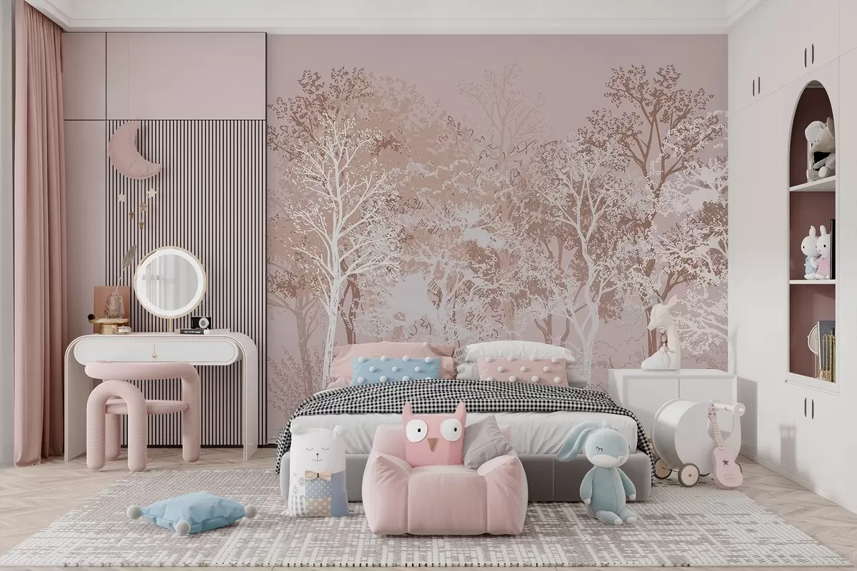 Фотошпалери Дерева в лісі, мінімалізм, природа, бежева палітра кольорів w02930