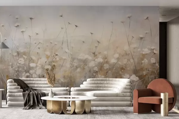 Шпалери Бетонна стіна в квітах у стилі гранж w02972