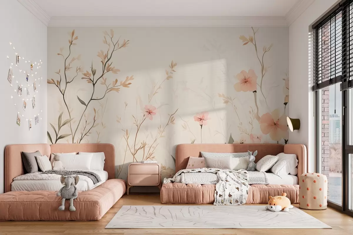 Фотошпалери польові квіти з персиковим цвітом w03009