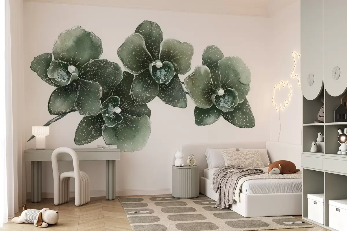 Фотошпалери Гілка квітки орхідеї, акварельний стиль, квітковий, зелені кольори w03165v1