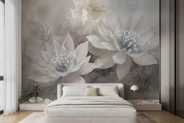 Фотошпалери Пара акварельних квітів на стіні в стилі гранж w03188v1