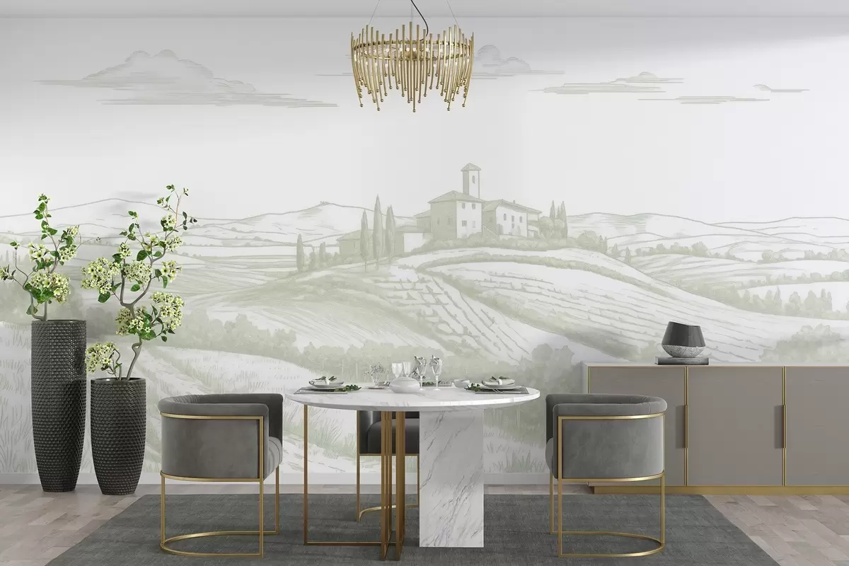 Фотошпалери Пейзажі Тоскани, Італія, виноградники, природа, старий замок, зелені кольори w03349v2