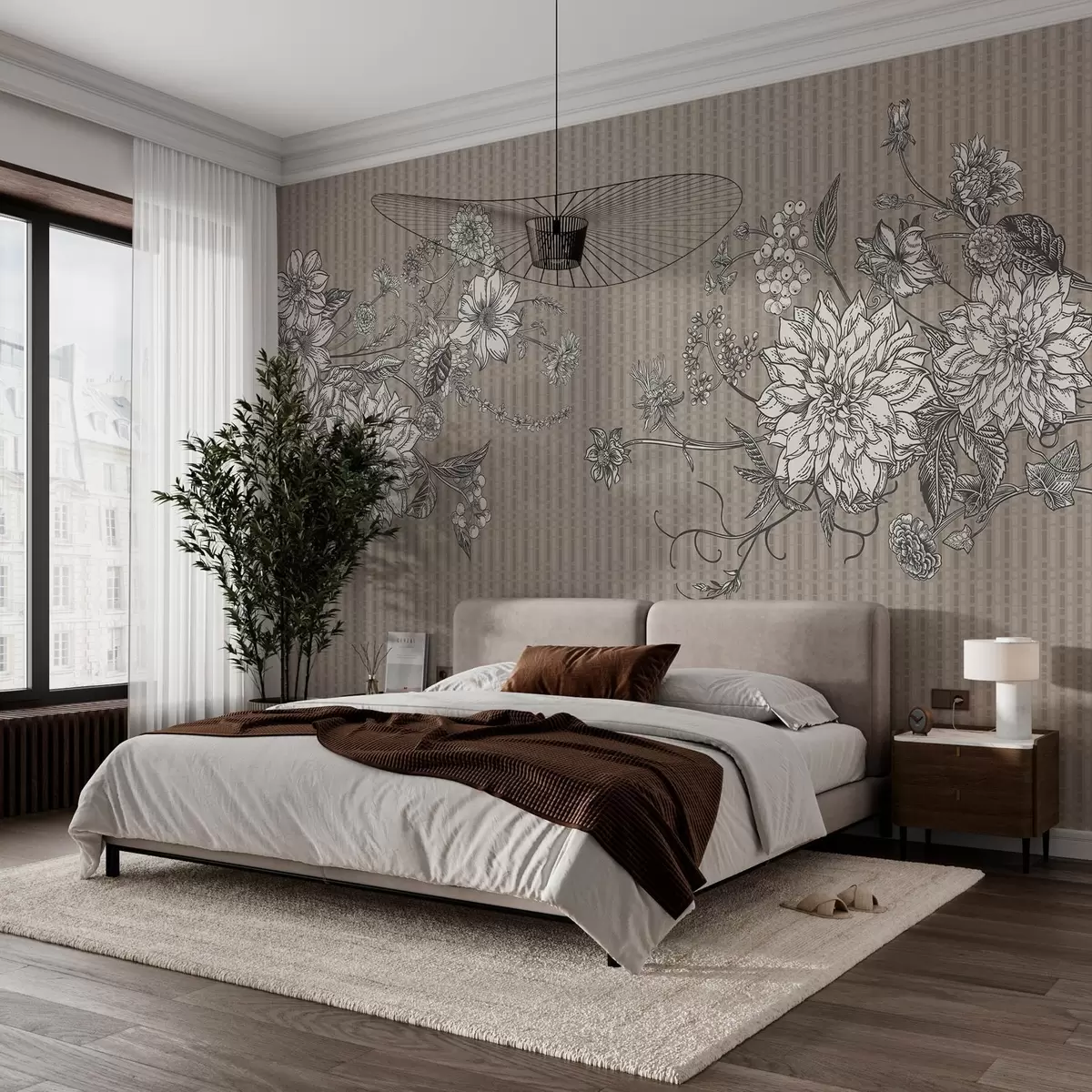 Фотошпалери Графічні квіти на матовому тлі в бежевих тонах w03395