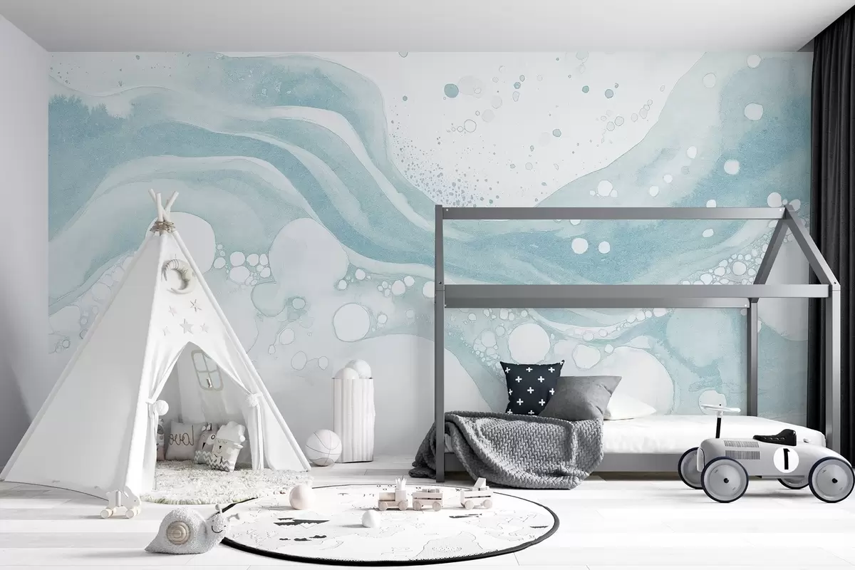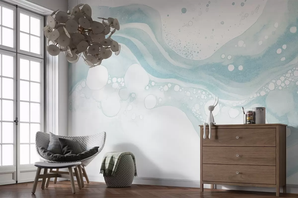 Фотошпалери Акварельний абстрактний малюнок, флюїд-арт, синій колір w03403v1