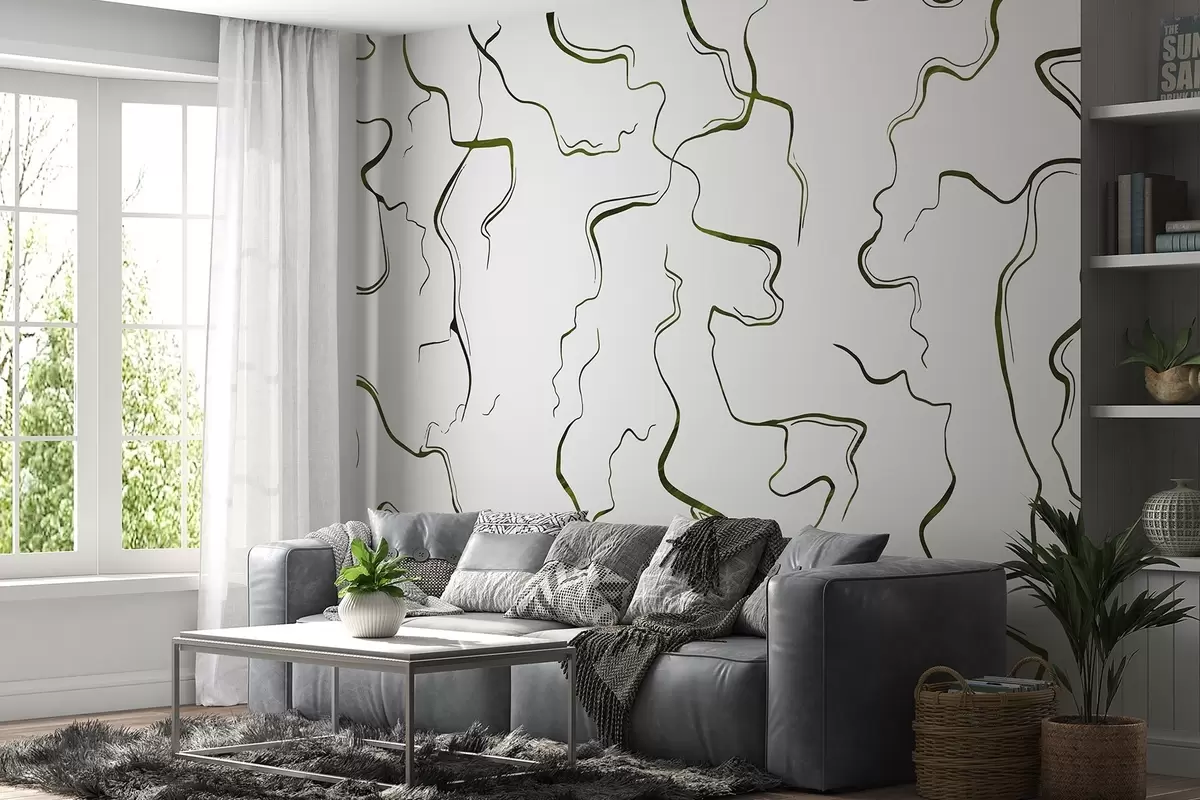 Фотошпалери Геометричні лінії, чорнильний стиль, абстракція, зелені кольори w03436