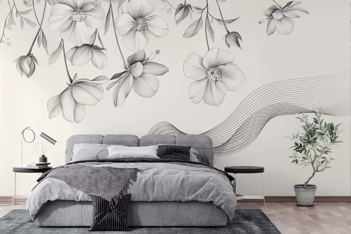 Фотошпалери графічні квіти та лінії на світлому тлі w03454