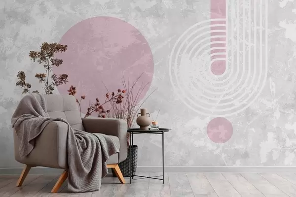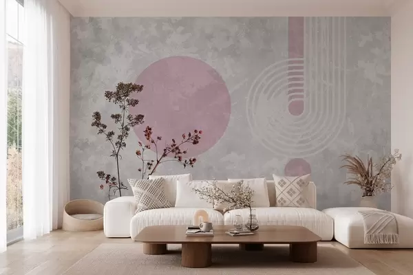 Фотошпалери сучасна геометрія з сухими квітами в стилі гранж w03459