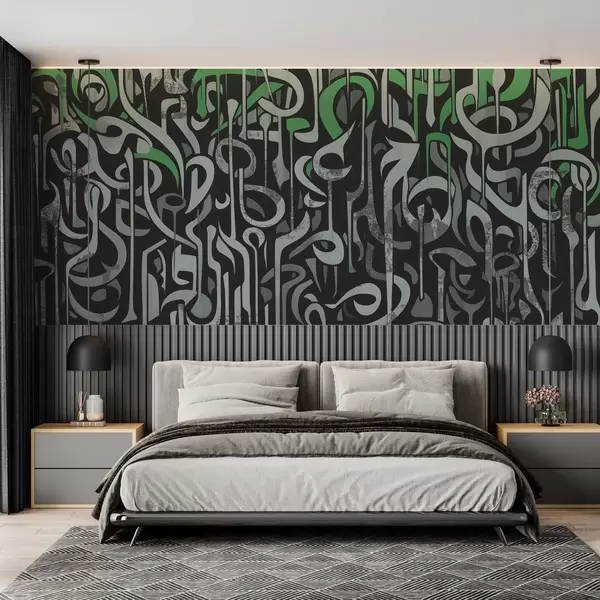 Фотошпалери Стріт-арт дизайн із зеленим та сірим кольорами w03607v2