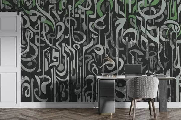 Фотошпалери Стріт-арт дизайн із зеленим та сірим кольорами w03607v2