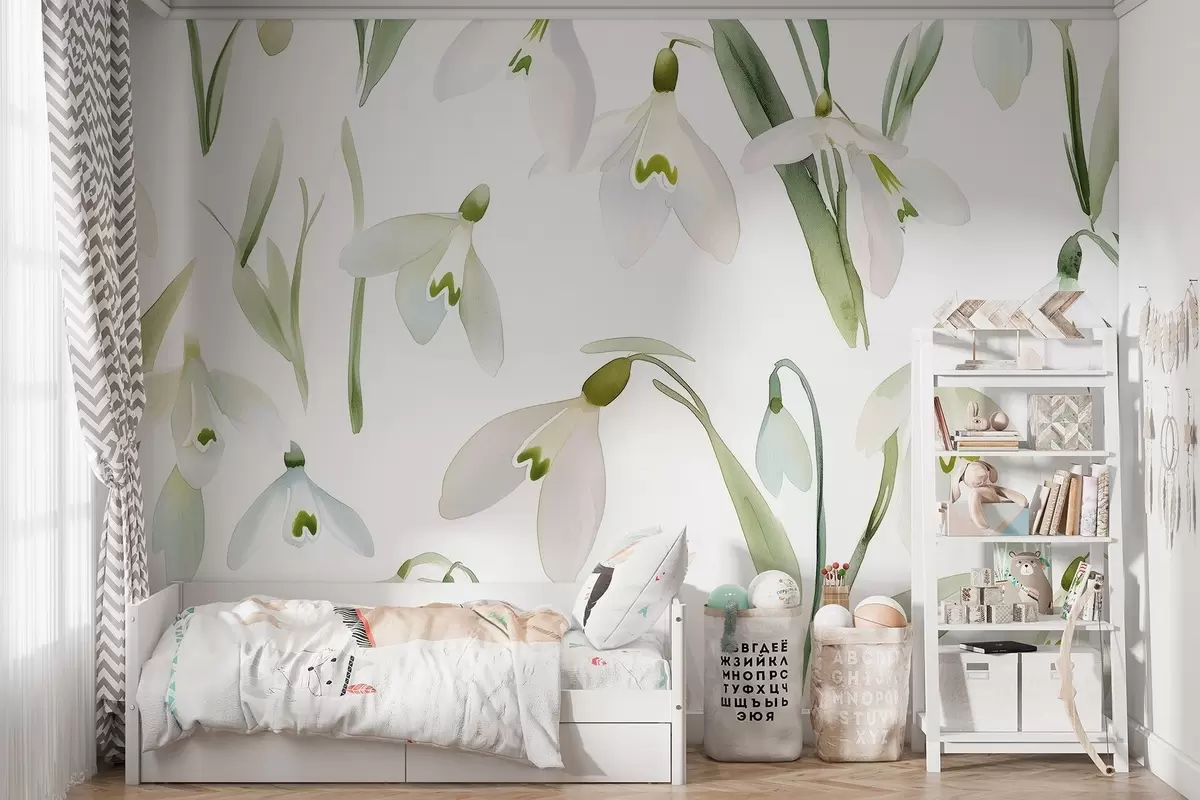 Фотошпалери Квіти пролісків в акварельному стилі, природні кольори w03754