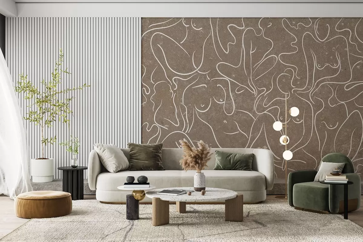Фотошпалери Лінійний малюнок анатомічних силуетів, абстракція, бежевий фон w03756