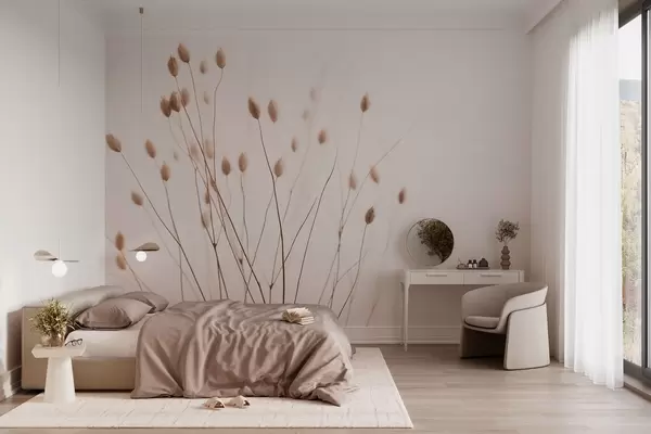 Фотошпалери Мінімалістичні гілки з колосками на білому тлі w03805