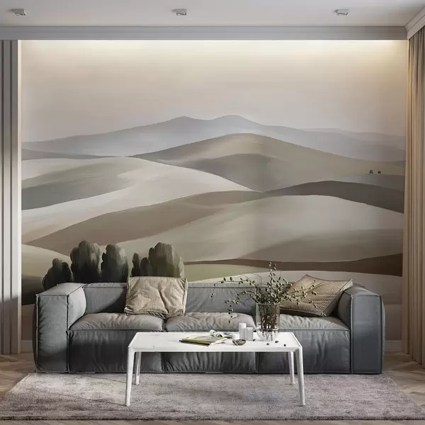 Фотошпалери Пейзажі з деревами, Тоскана, бежеві та сірі кольори, олійна техніка w03880v1