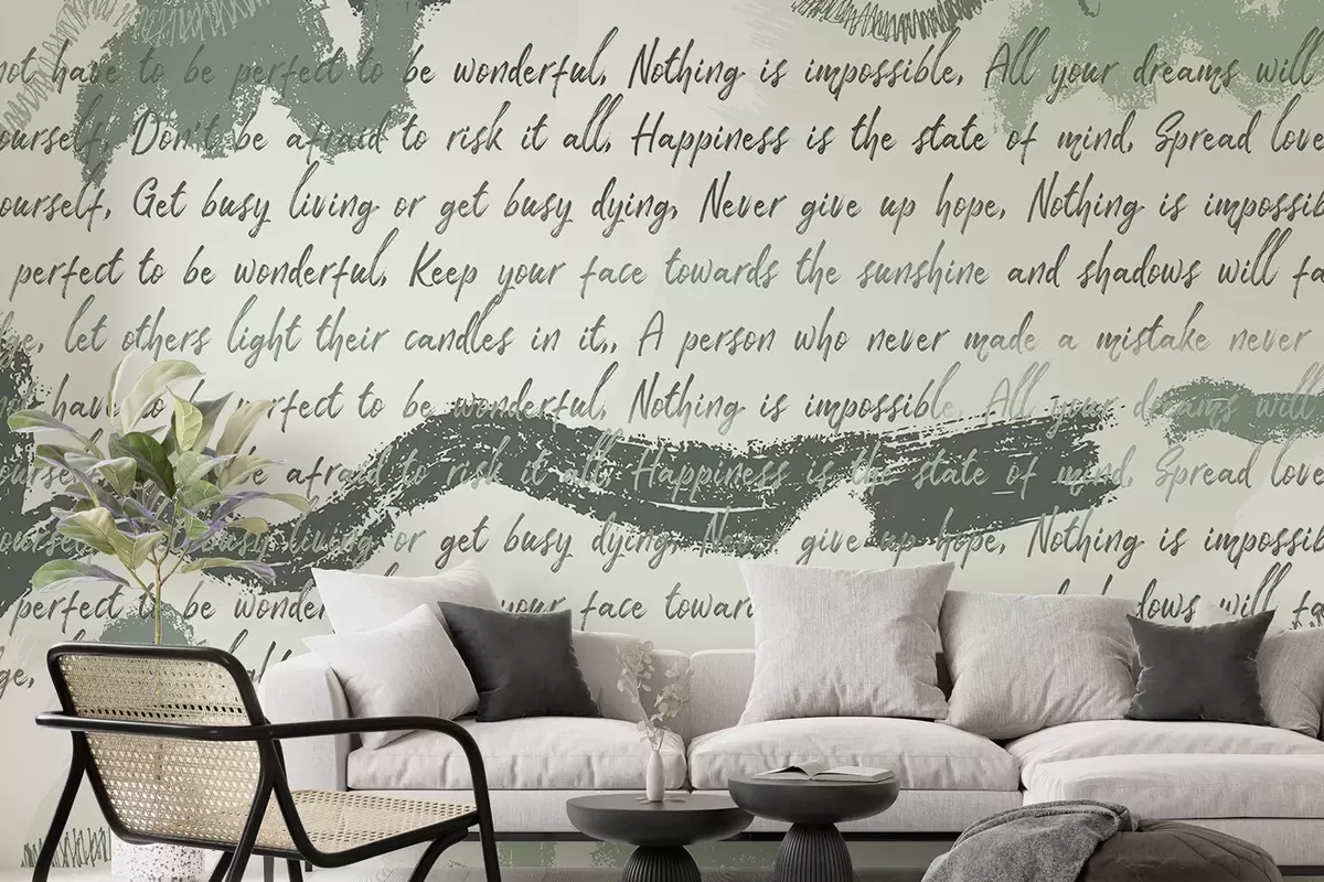 Фотошпалери Дизайн з надихаючими цитатами, абстракцією, зеленими кольорами w03909v1