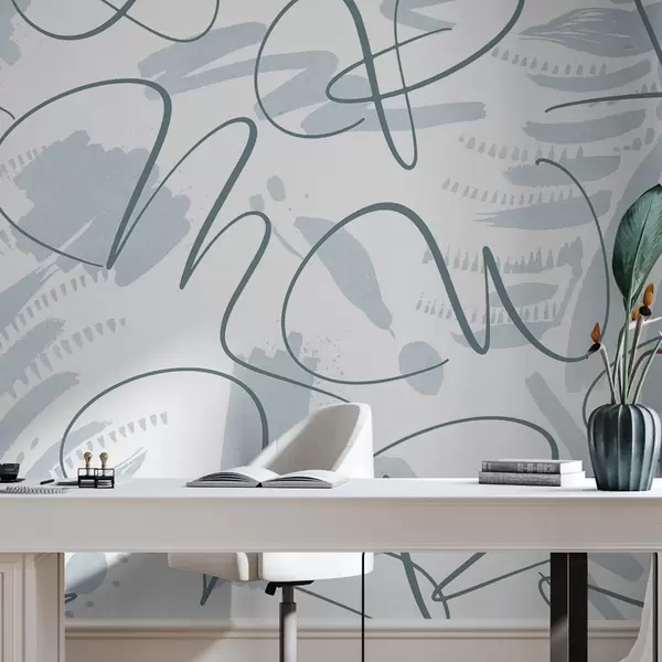Фотошпалери Каліграфічна абстракція з літерами, мазки пензлем, синій колір w03913v1