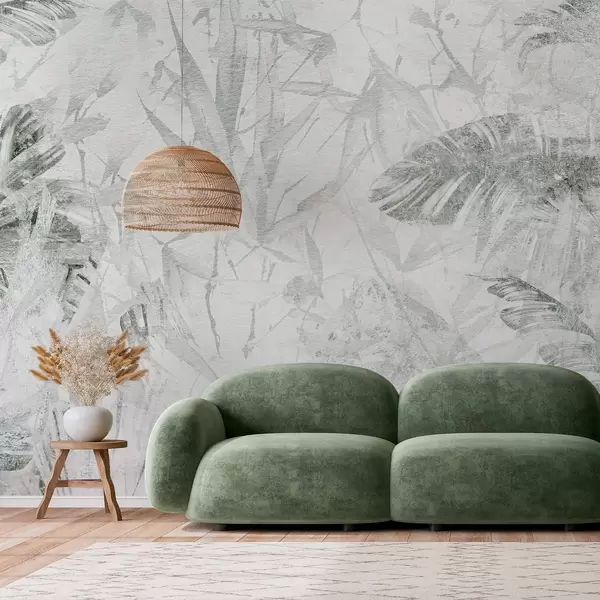 Фотошпалери Квіткова абстракція в стилі гранж з імітацією потертості, відтінки зеленого w03926v2