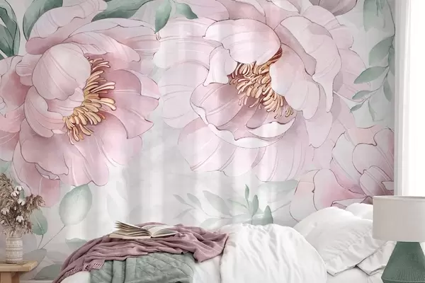 Фотошпалери Імітація рожевих півоній аквареллю w03932v2