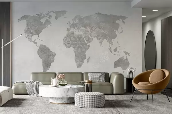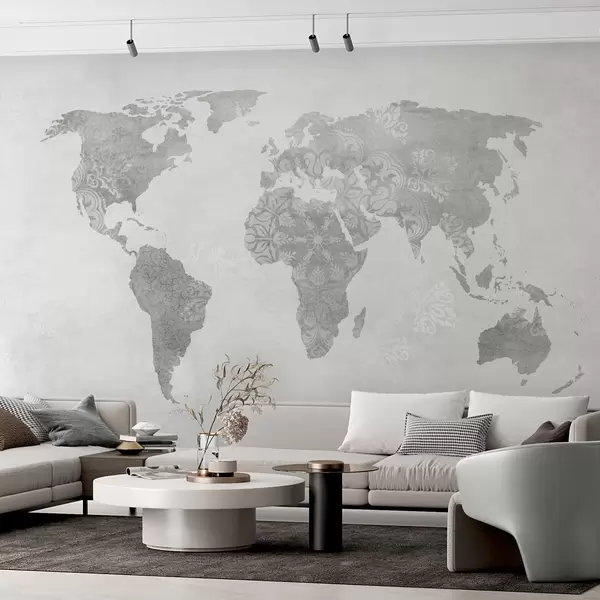 Фотошпалери Карта світу з візерунком, монохромні відтінки w03954v1