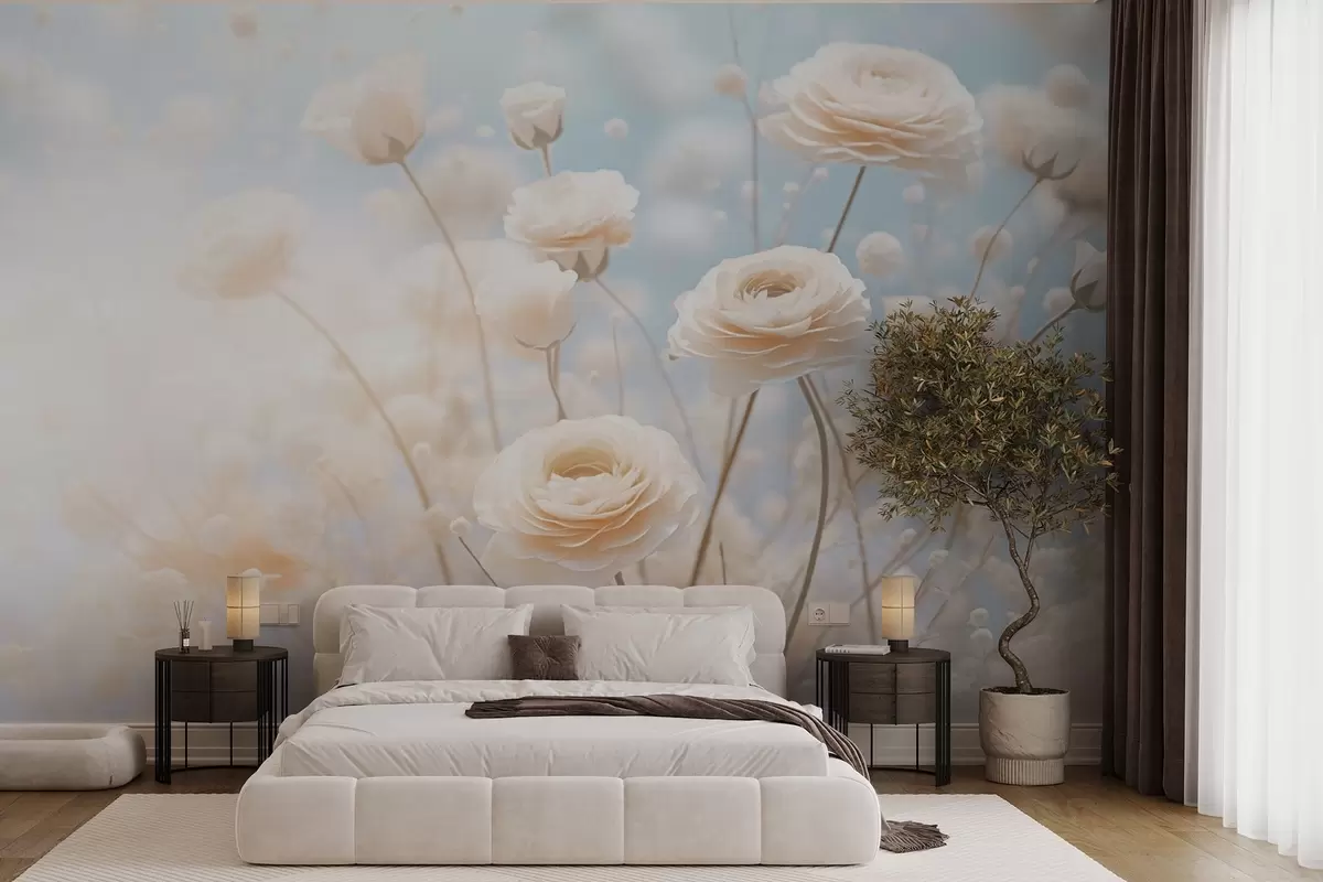 Фотошпалери Ніжні кремові троянди на світло-блакитному фоні w03997
