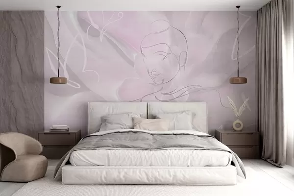 Фотошпалери Квіткова абстракція з лінійним малюнком Будди, рожеві кольори w04004v2