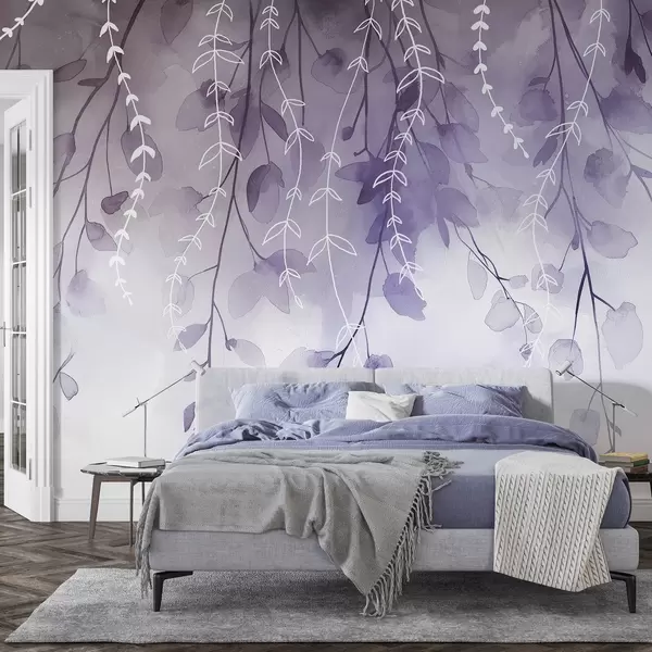 Фотошпалери Гілки з листям в акварельному стилі, природні фіолетові кольори w04007v2