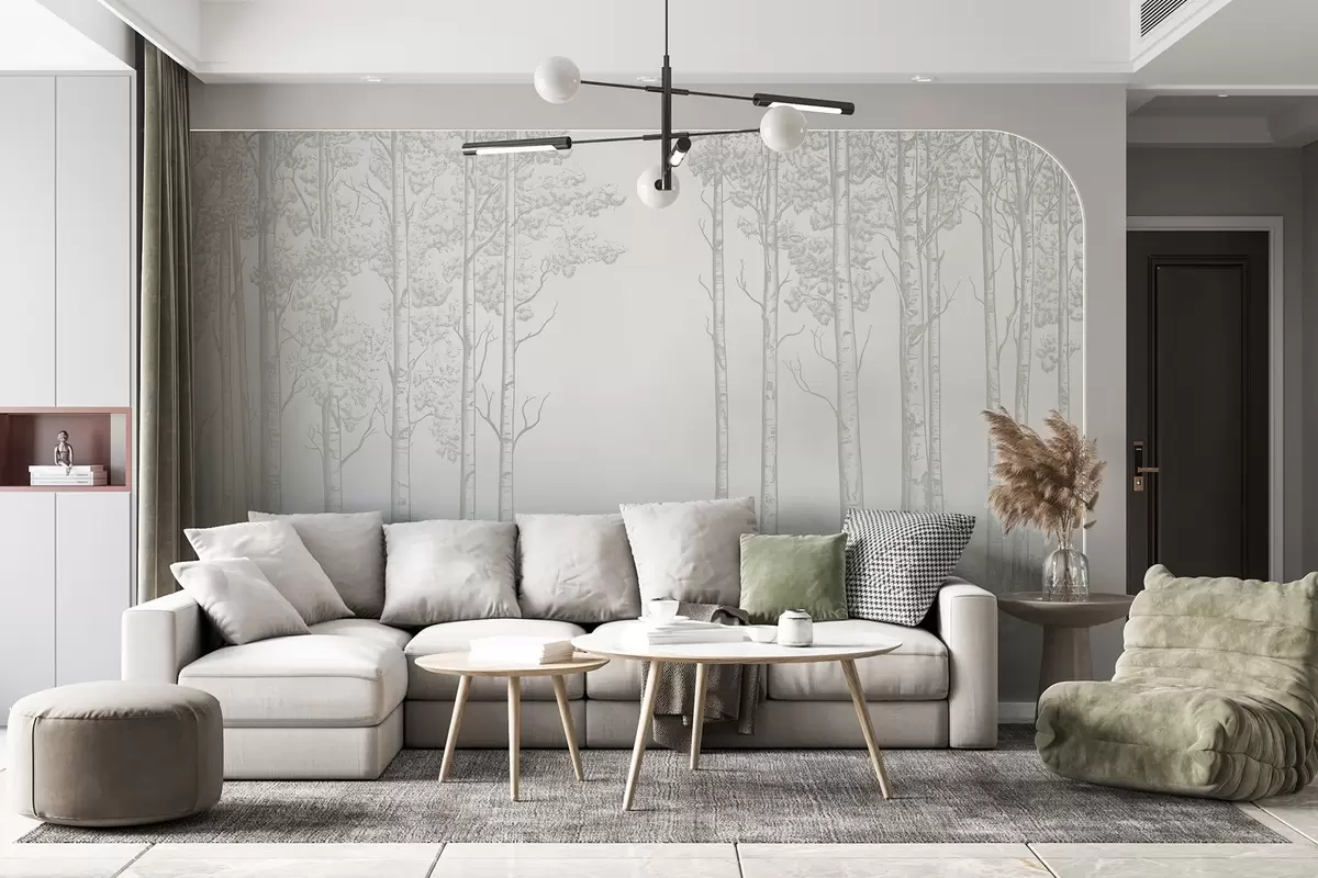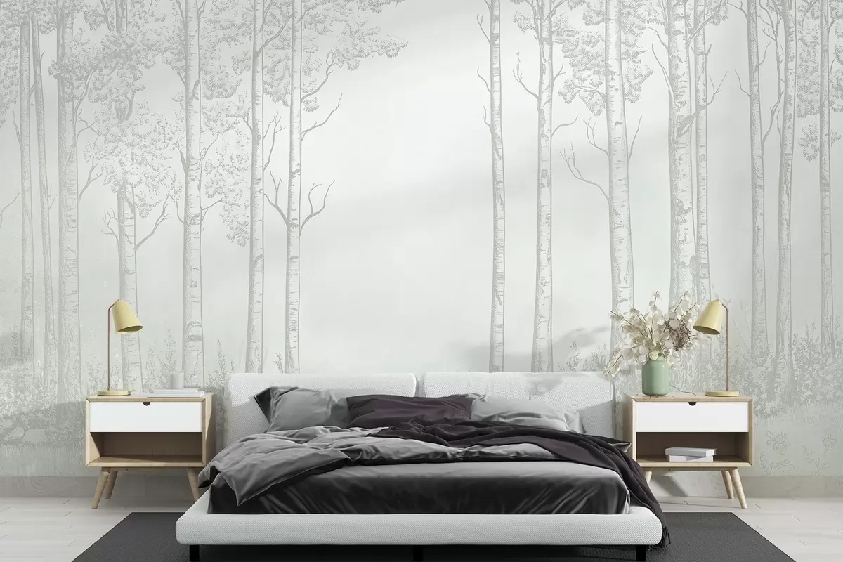 Фотошпалери Ліс з березами, мінімалізм, природа, зелена палітра кольорів w04009v1