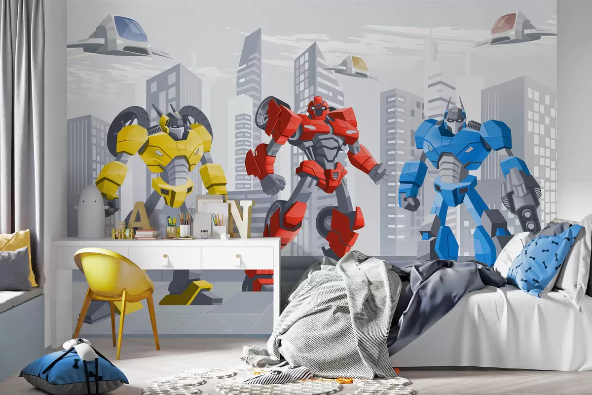 Фотошпалери Роботи-трансформери на тлі монохромного міста w04012