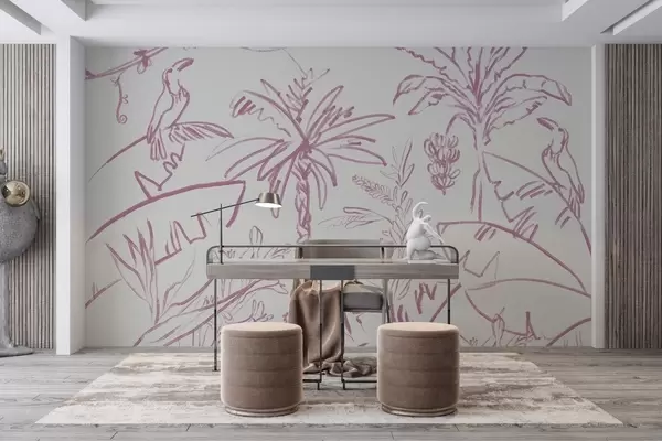 Фотошпалери Тропічні лінії в рожевому кольорі, тропічні рослини, банани w04020v2