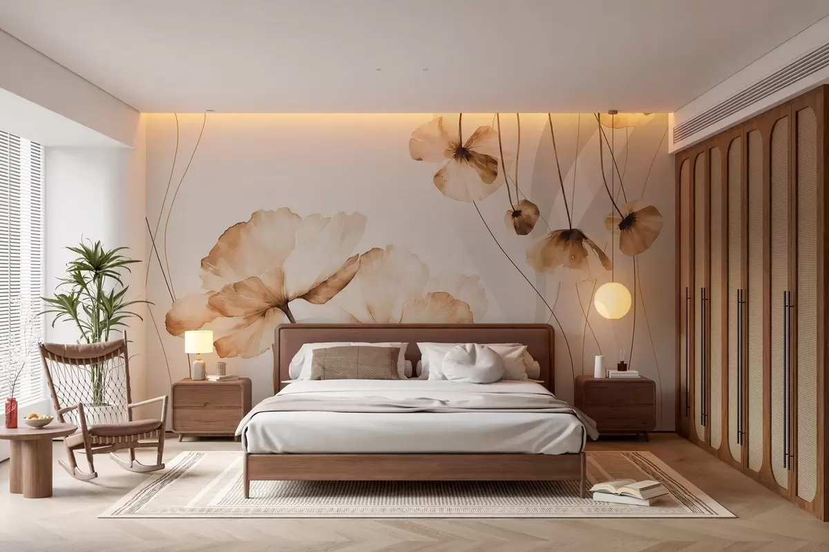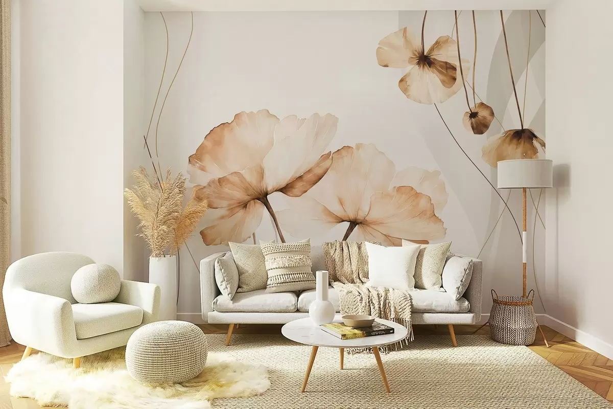 Фотошпалери квіти в стилі акварелі в коричневих тонах w04026