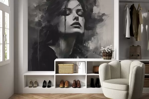 Фотошпалери Портрет жінки в сіро-чорному одязі w04049