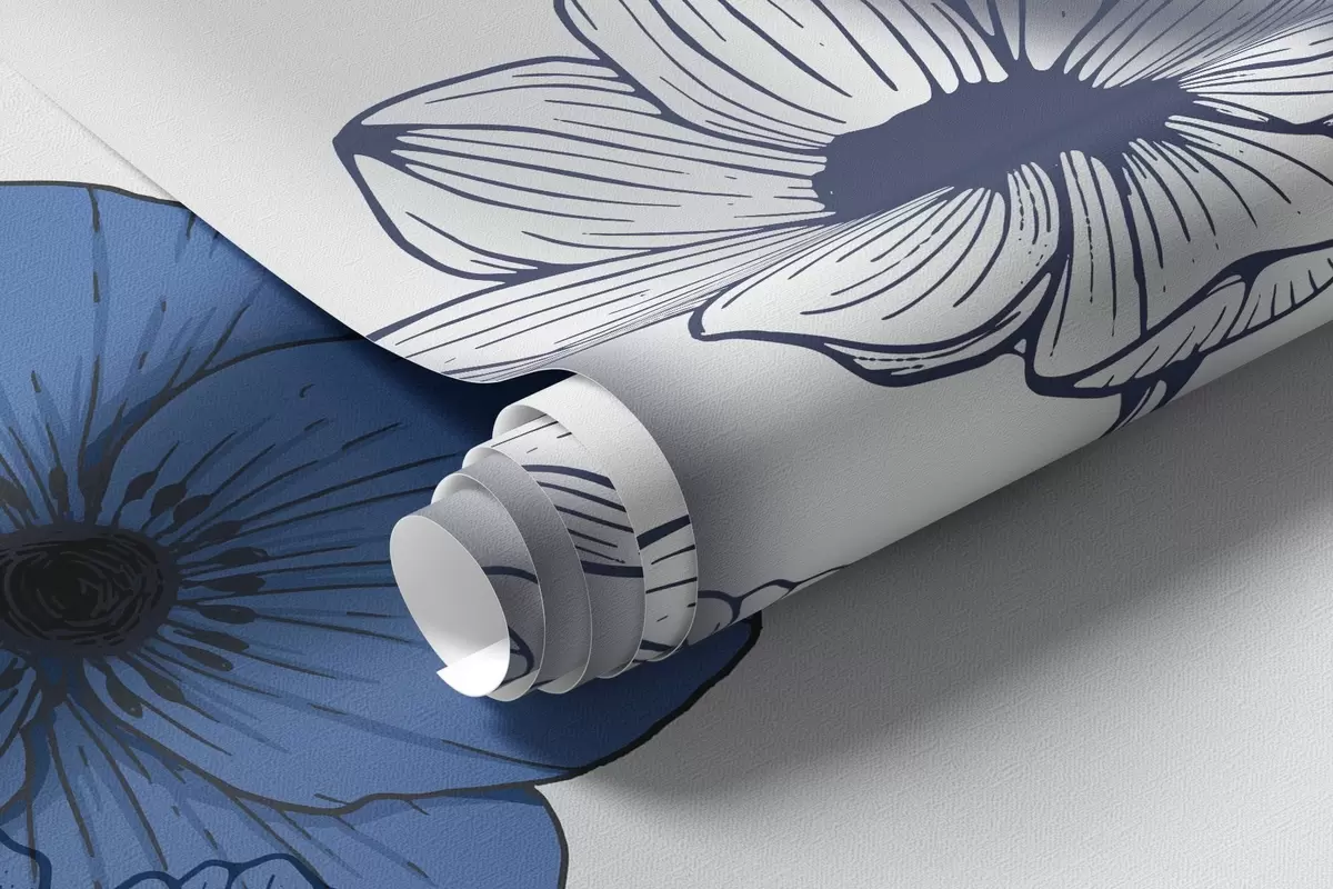 Фотошпалери Силуети балерин, сільські квіти, лінійний арт, сині кольори w04069v3
