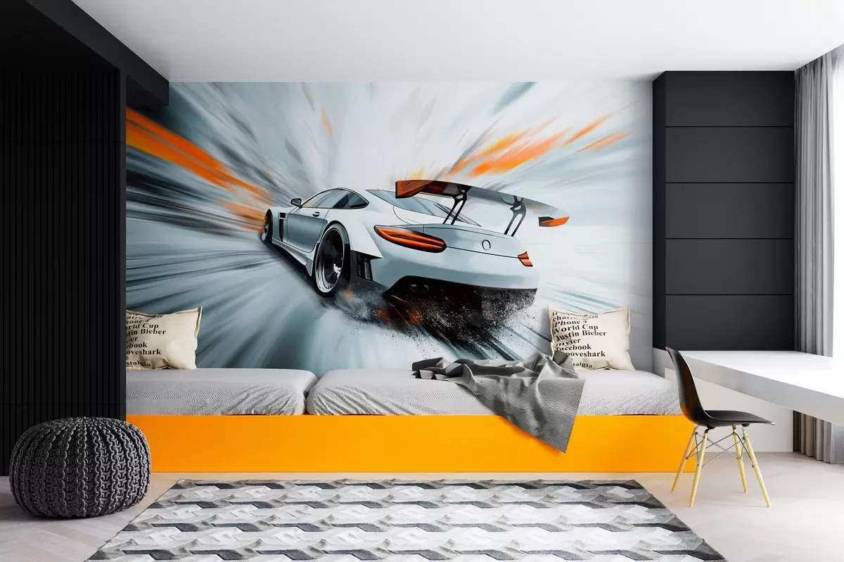Фотошпалери динамічний спортивний автомобіль, що мчить крізь простір w04074