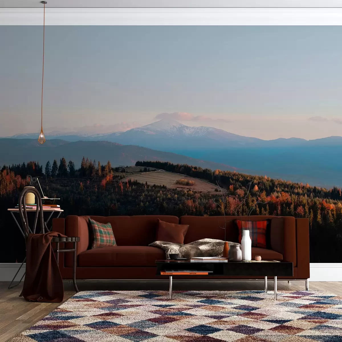 Фотошпалери Карпатські гори, олійна текстура, осінній ліс, захід сонця w04098