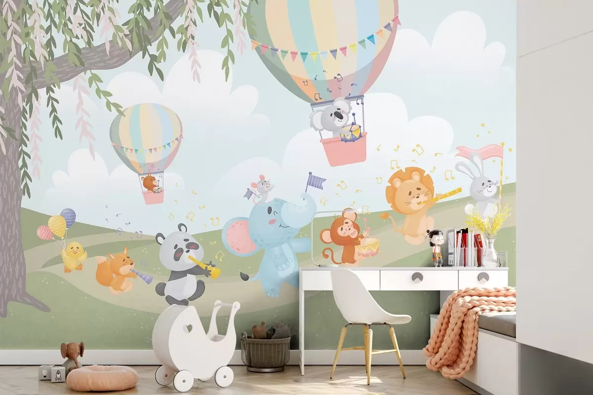 Фотошпалери Пейзаж із тваринами, які грають на музичних інструментах w04200