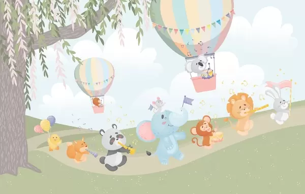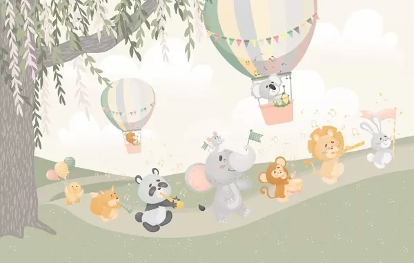 Фотошпалери Пейзаж із тваринами, які грають на музичних інструментах w04200v1