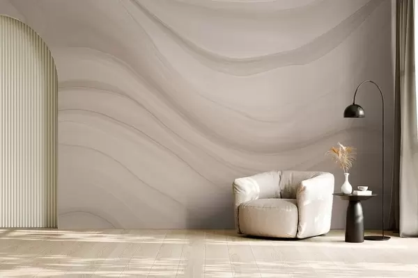 Фотошпалери Світло-бежева абстракція з м'якими хвилями w04257
