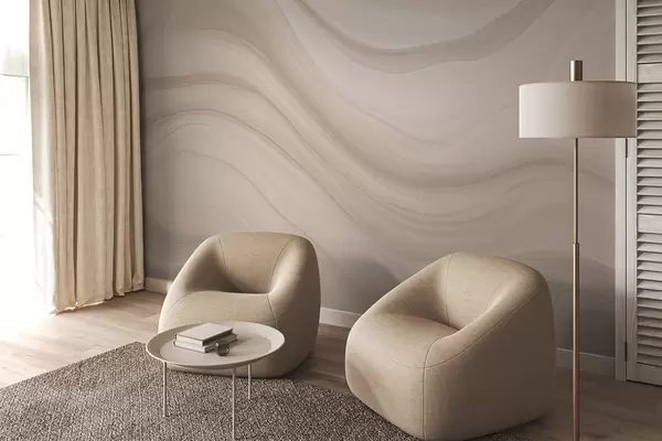 Фотошпалери Світло-бежева абстракція з м'якими хвилями w04257