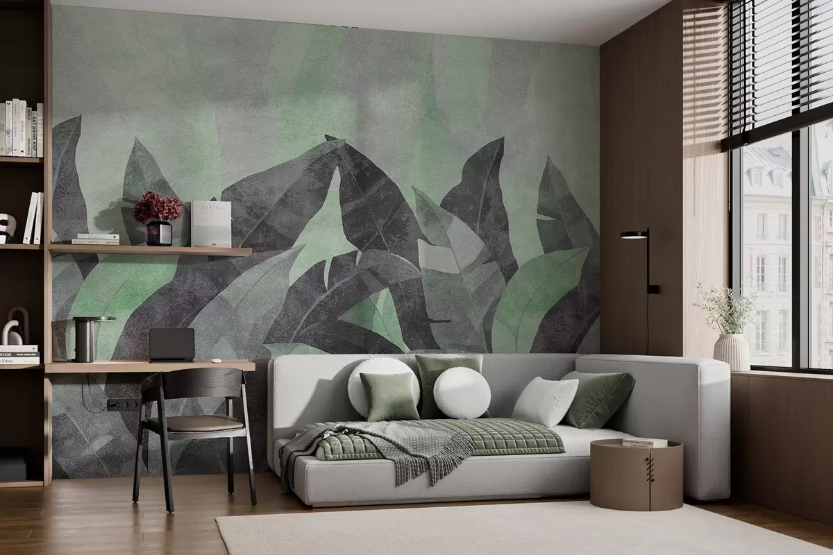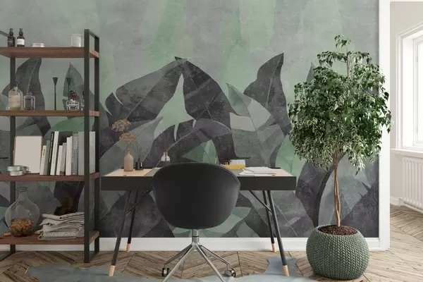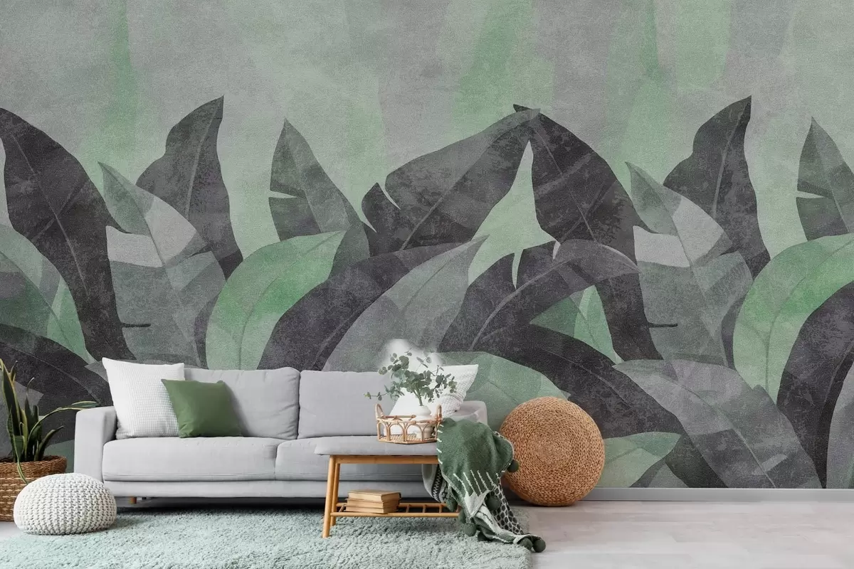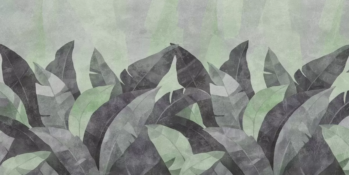 Фотошпалери текстуроване бананове листя у відтінках зеленого та сірого w04285v1