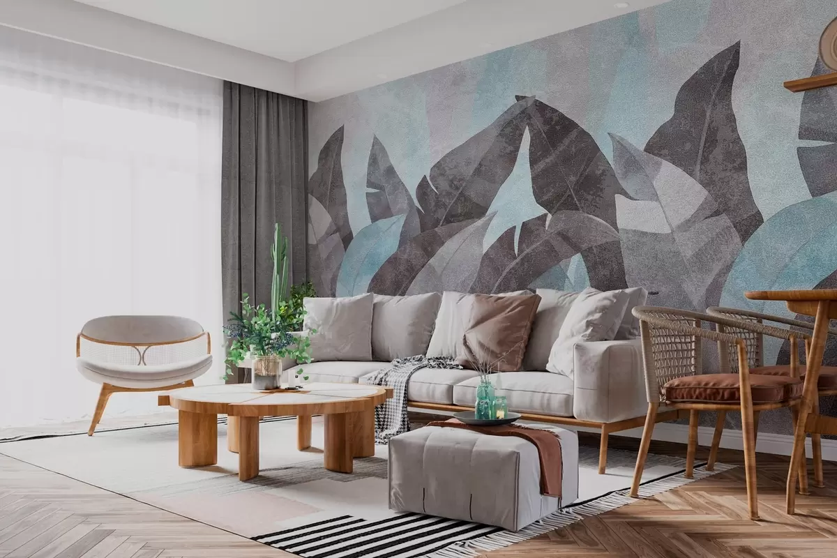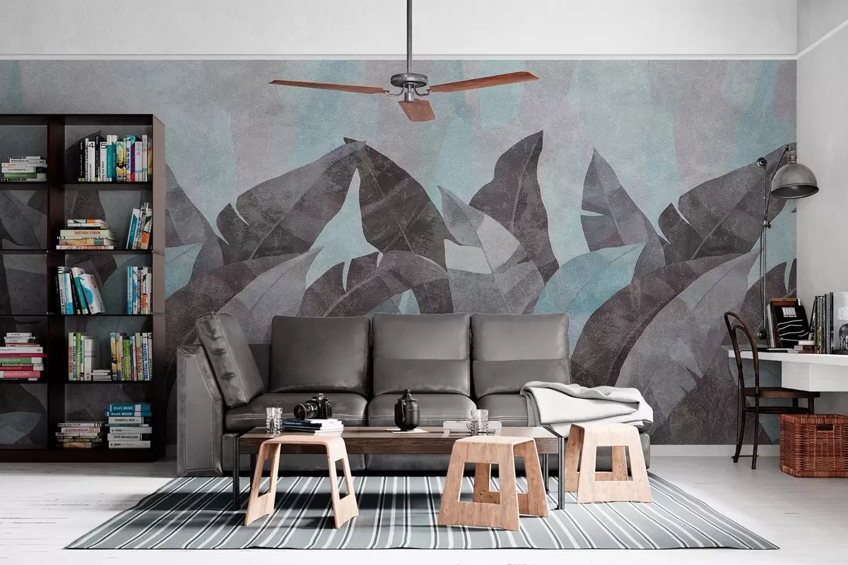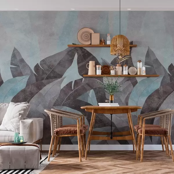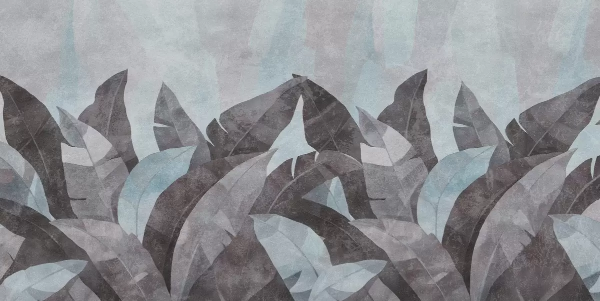 Фотошпалери текстуроване бананове листя у відтінках синього та сірого w04285v2