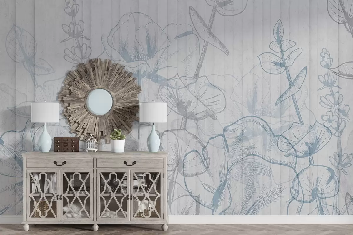 Шпалери Силуети рослин на бетонному тлі w04327v1