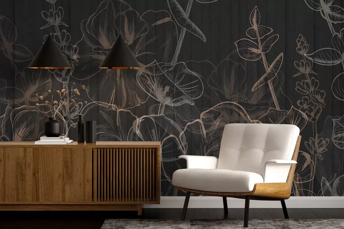 Фотошпалери Силуети рослин на бетонному тлі w04327v2