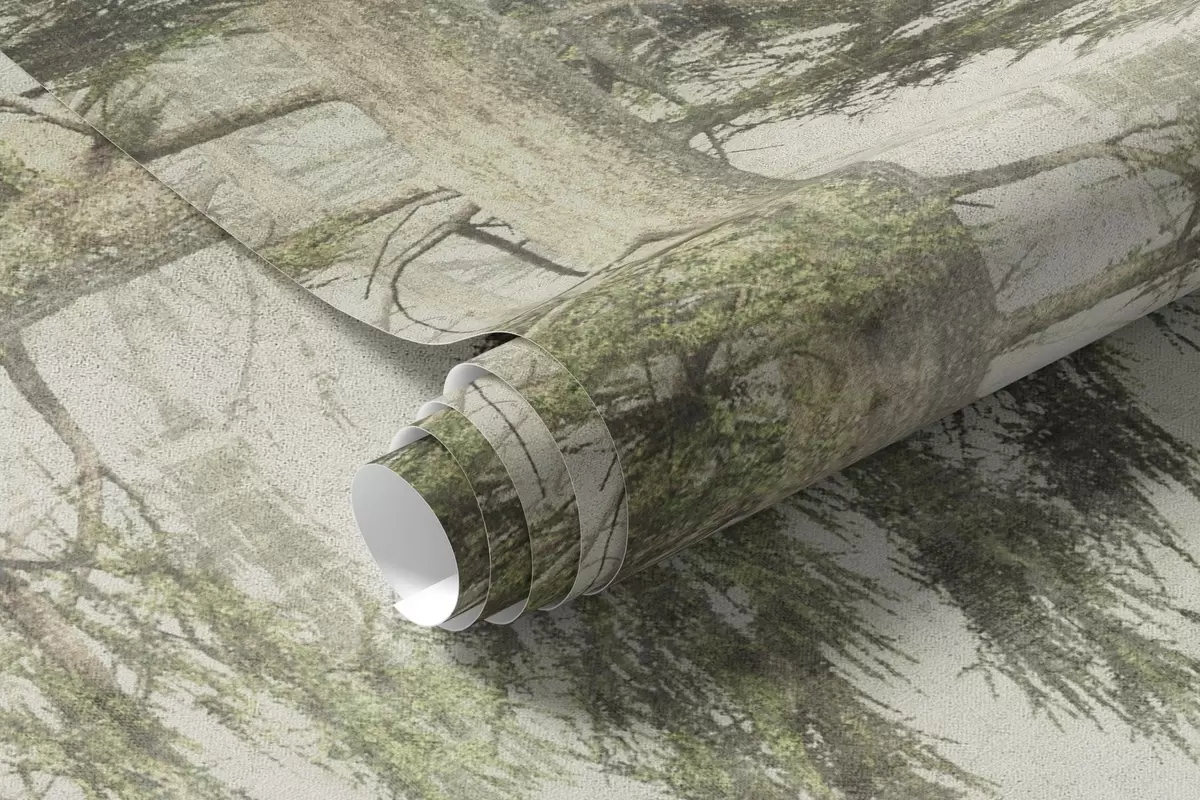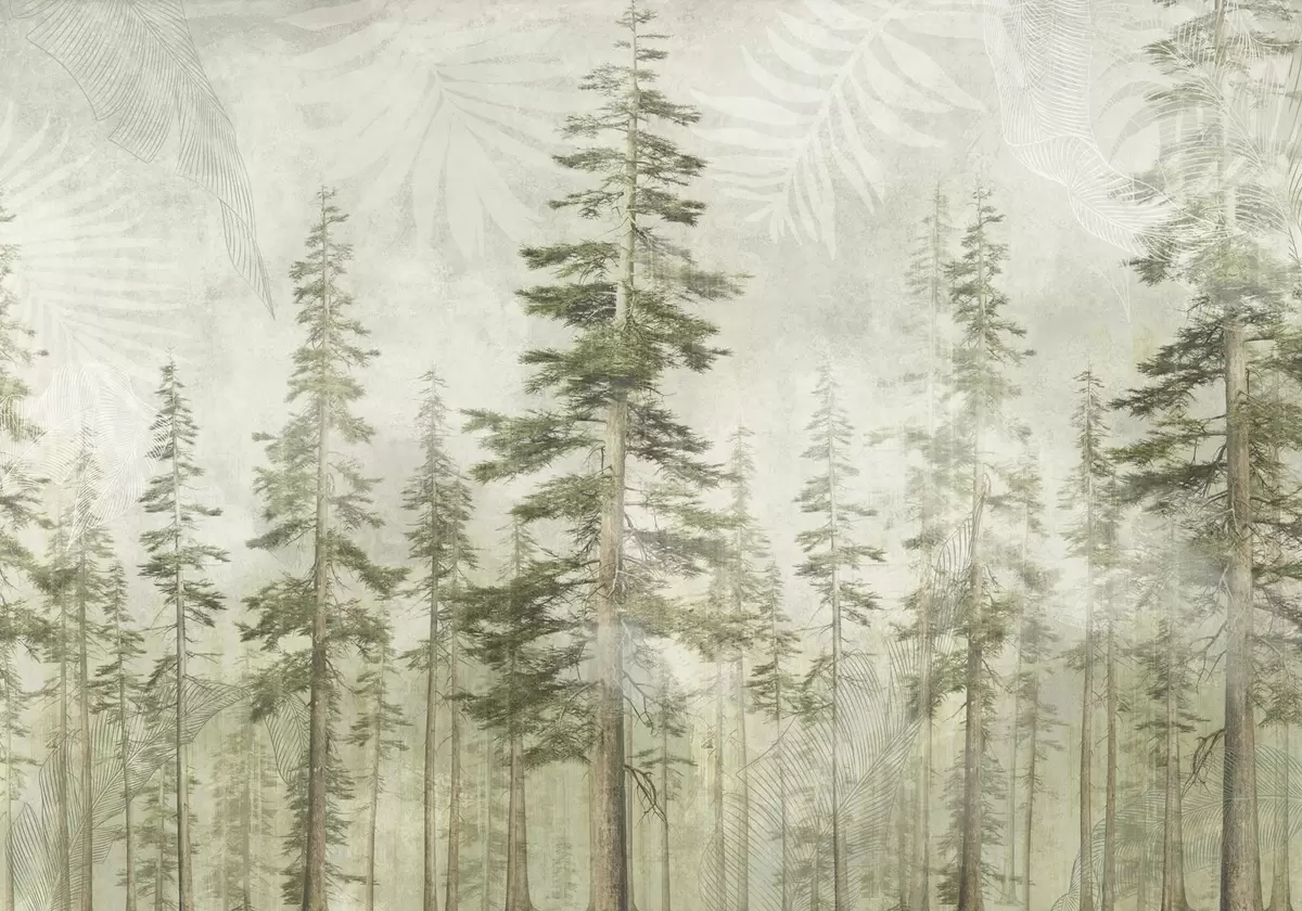 Фотошпалери Сосновий ліс з вінтажною текстурою паперу та дрібними візерунками w04342