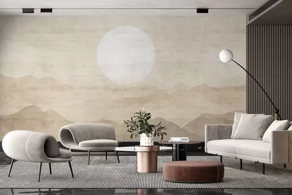 Фотошпалери Мінімалістичний гірський пейзаж з великим білим сонцем w04345