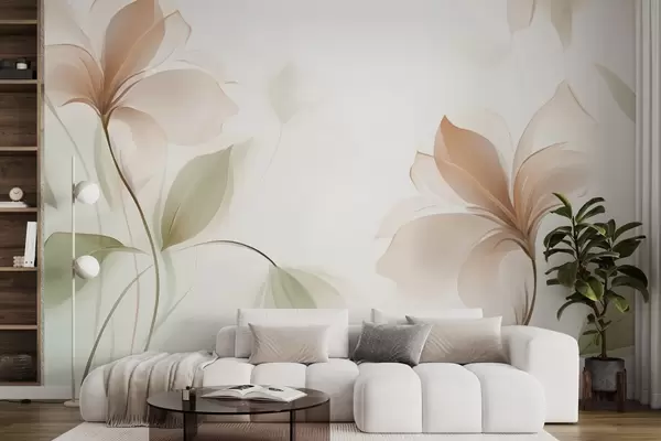 Фотошпалери Прозорі квіти в теплих бежевих і рожевих тонах w04397