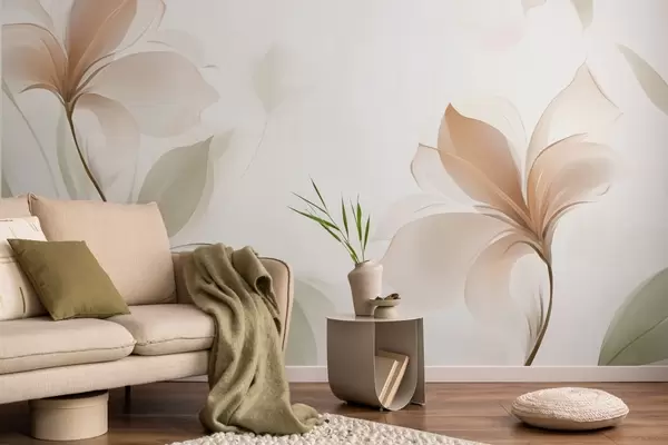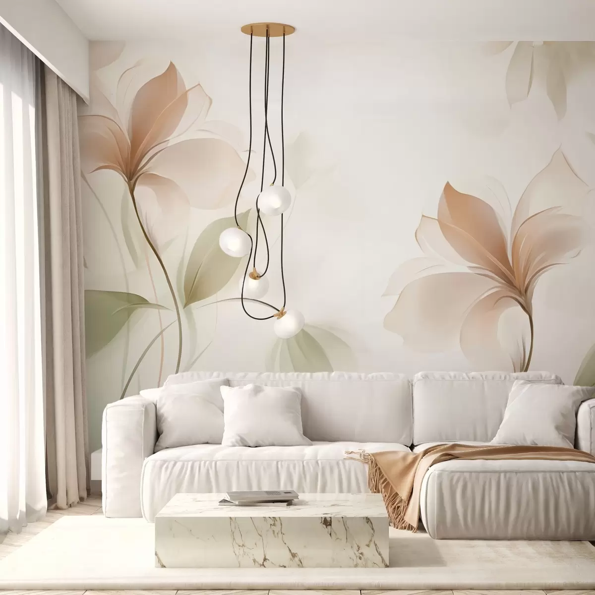 Фотошпалери Прозорі квіти в теплих бежевих і рожевих тонах w04397