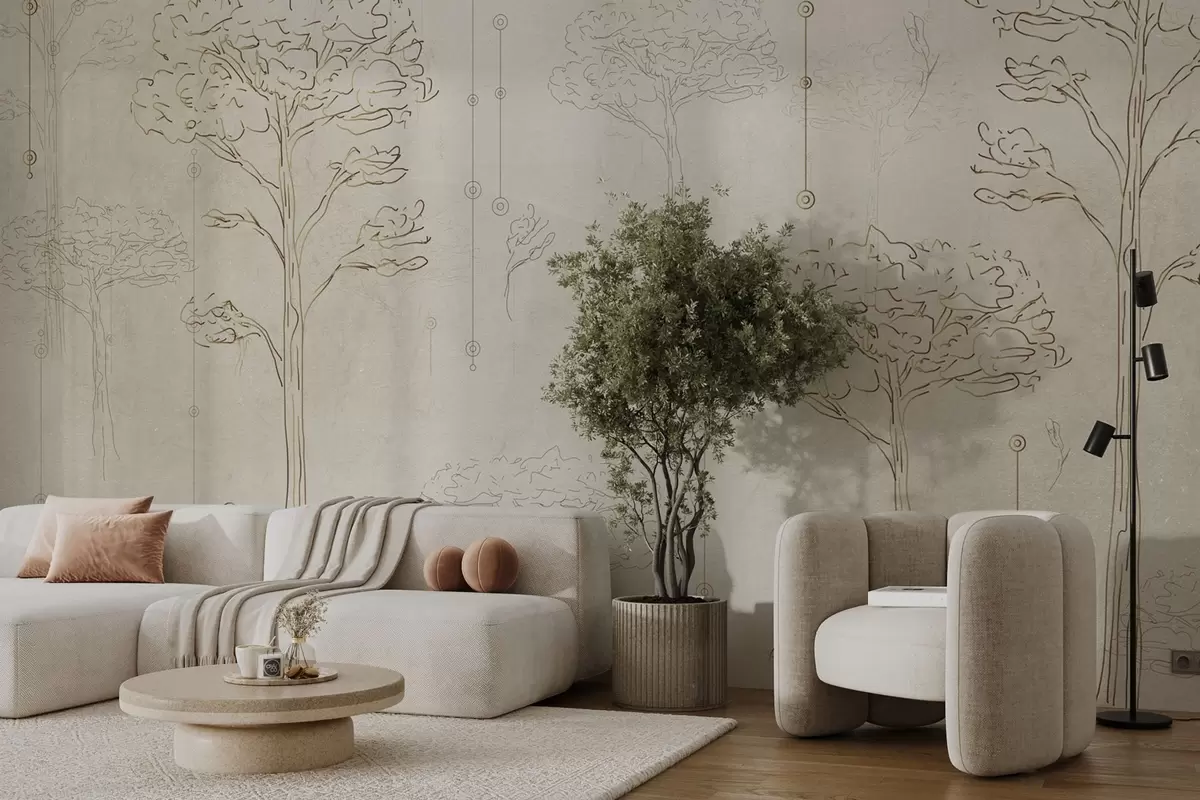 Фотошпалери Лінійні силуети дерев у мінімалістичному стилі w04403