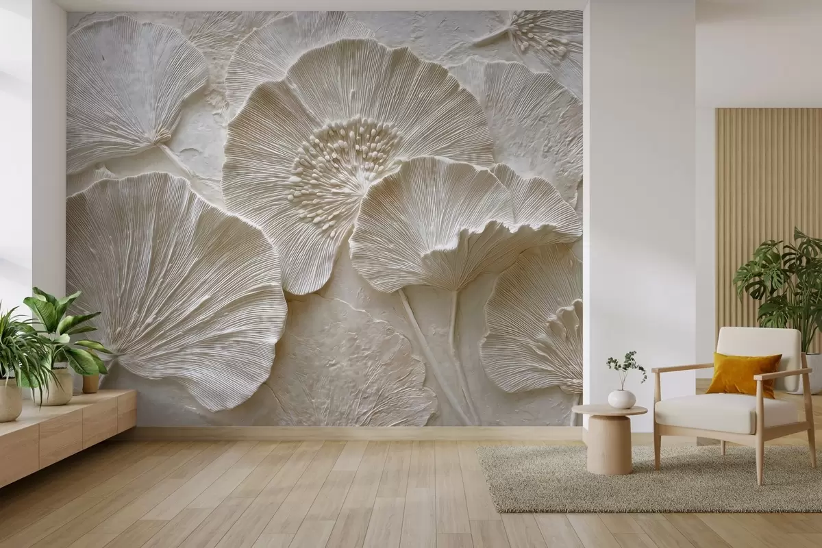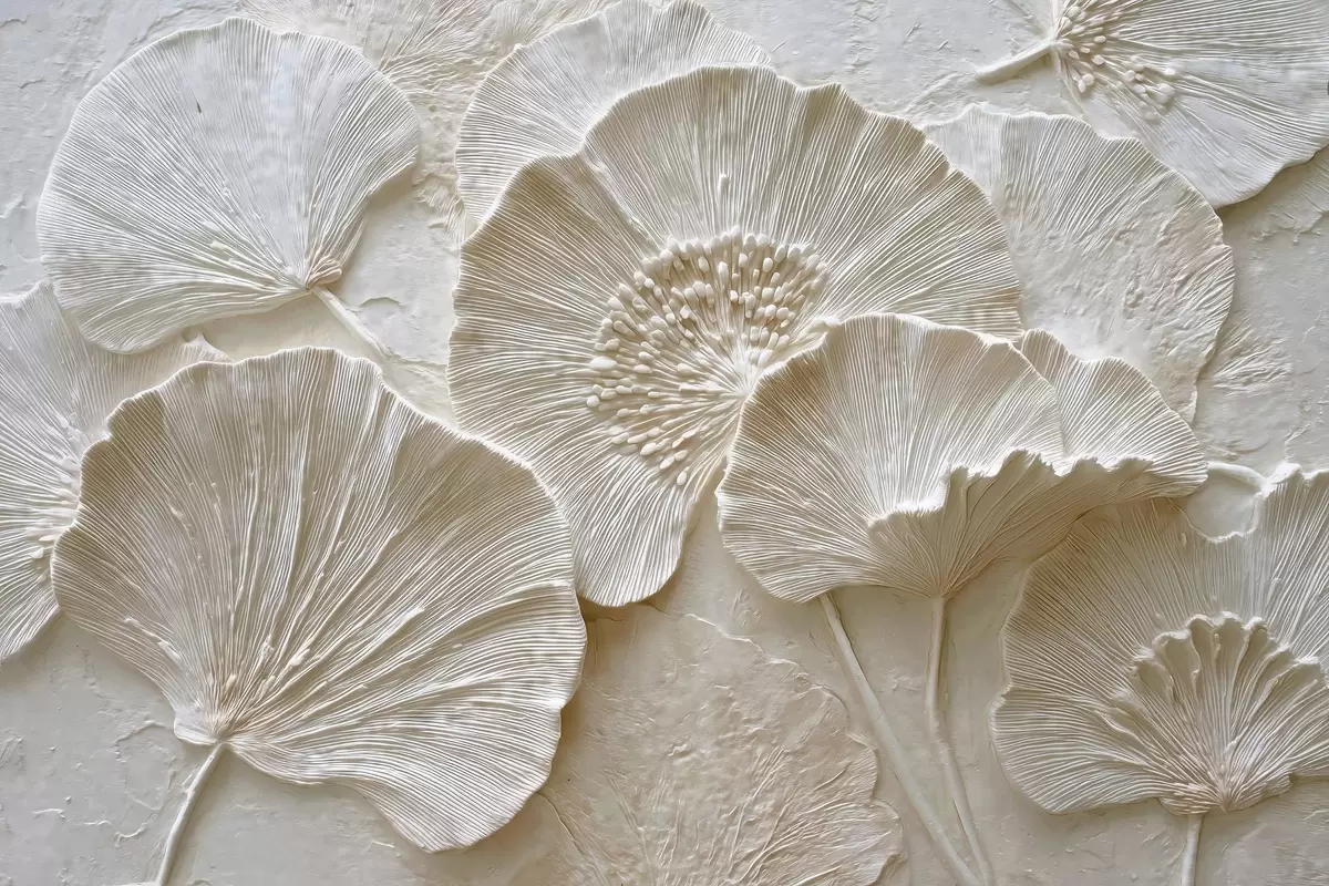 Фотошпалери Об'ємне листя гінкго в легкому рельєфному стилі w04444